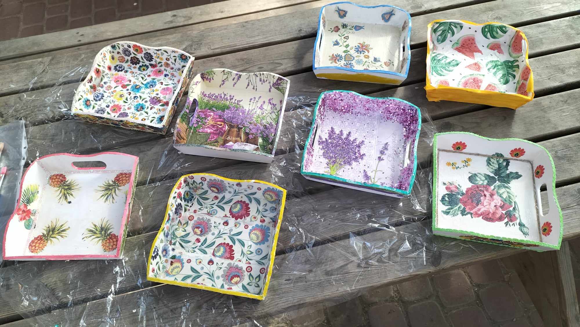 Podczas turnusu jedna z uczestniczek zorganizowała warsztaty decoupage. Efektem są takie oto wspaniałe dzieła :)