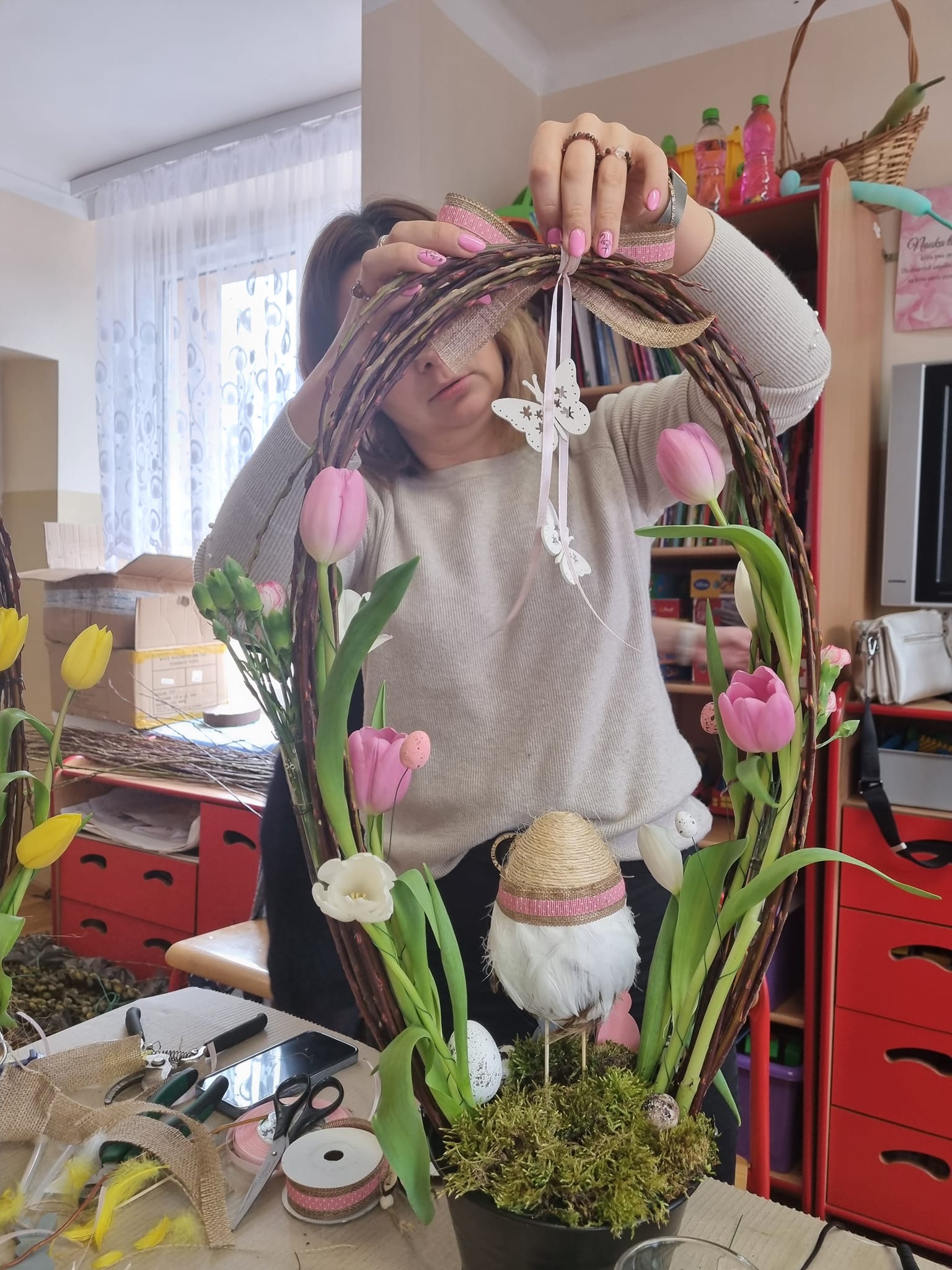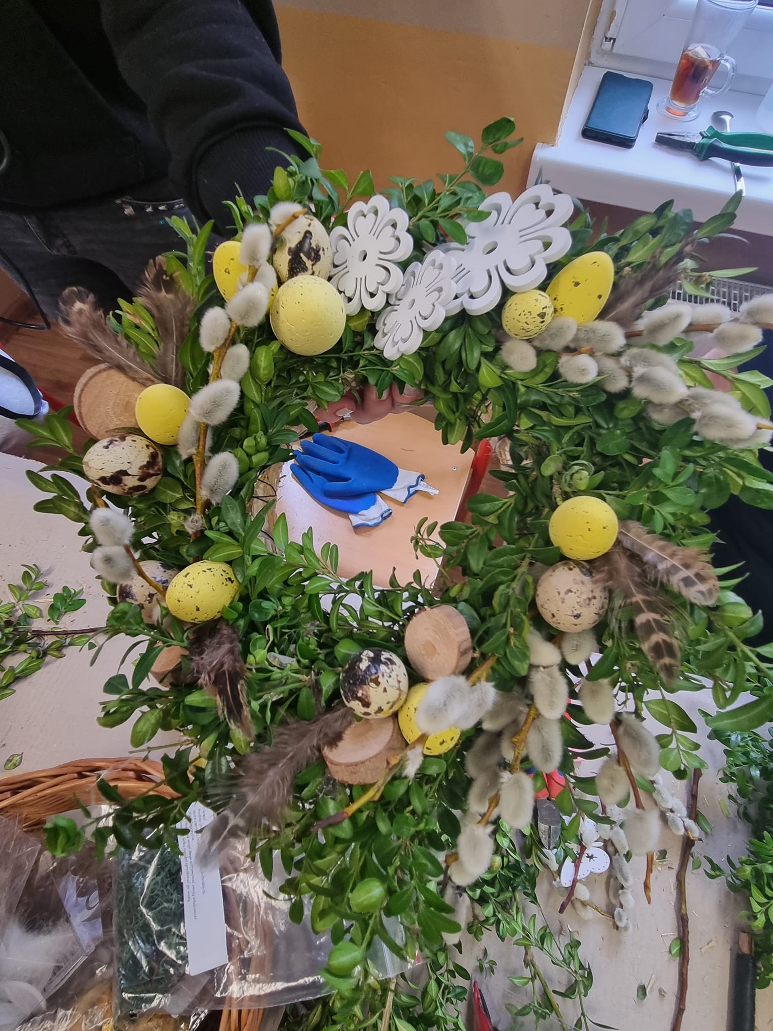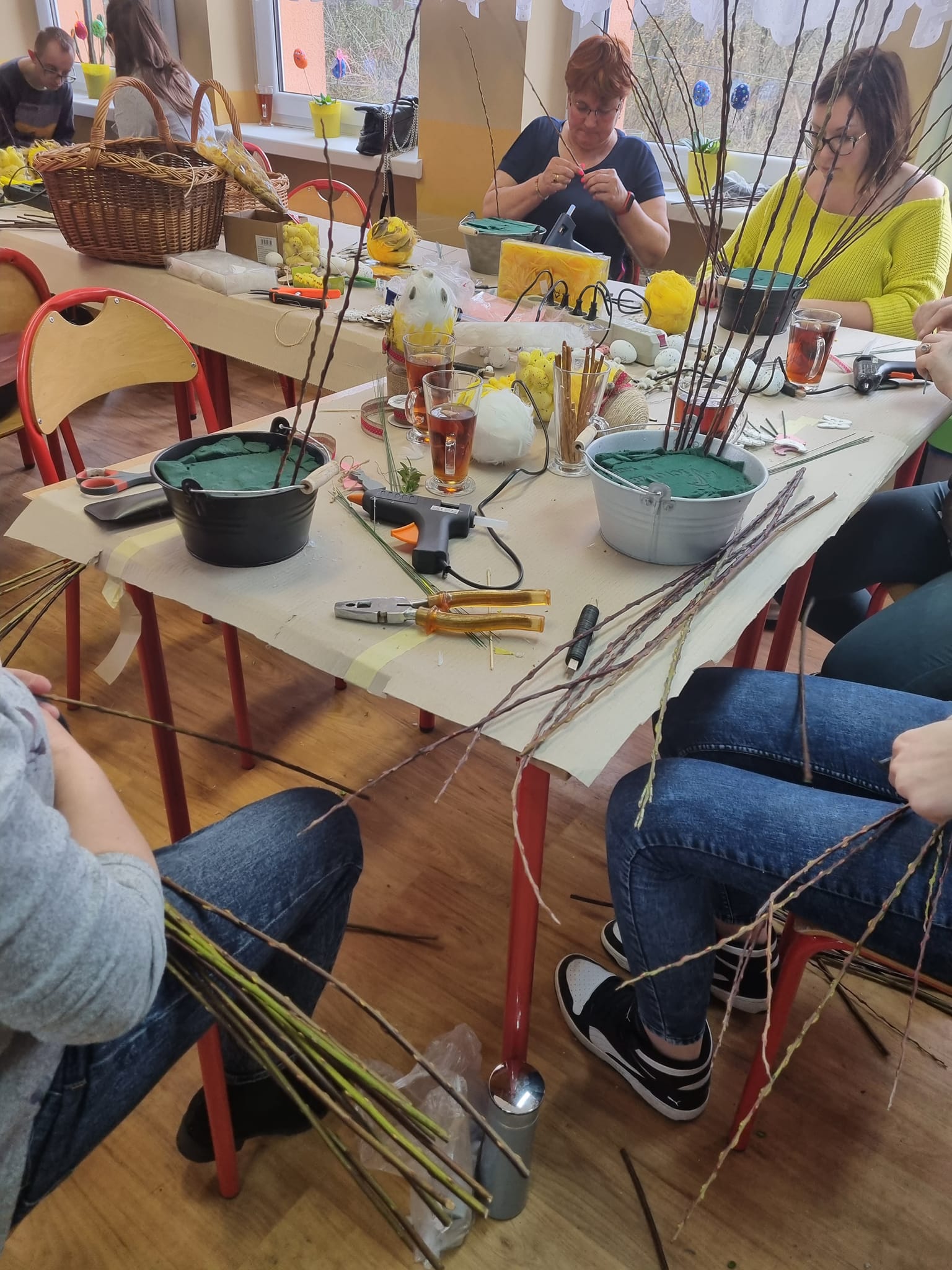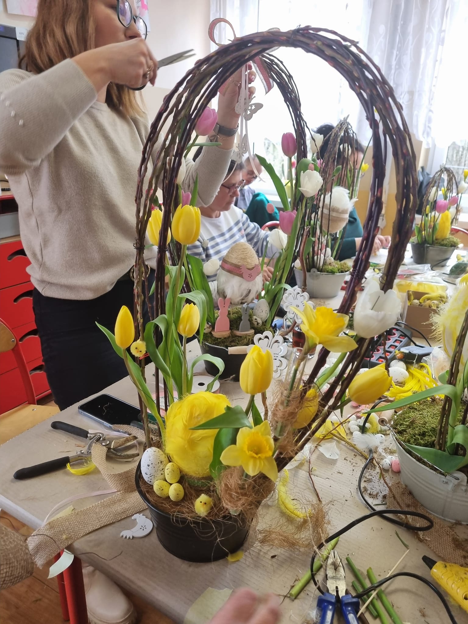 1 kwietnia Stowarzyszenie zorganizowało wielkanocne warsztaty florystyczne podczas których uczestniczki przygotowały palmy wielkanocne oraz stroiki.